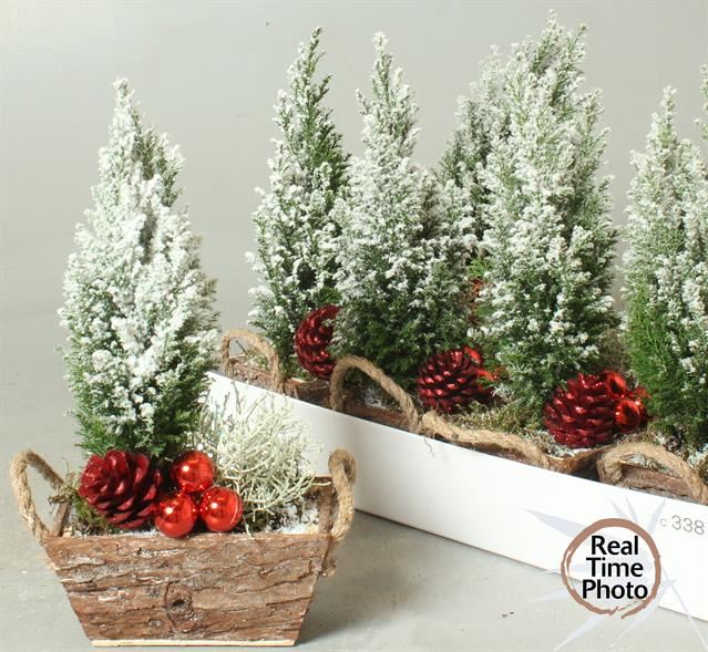/ Composizione natale vaso 18 legno + neve